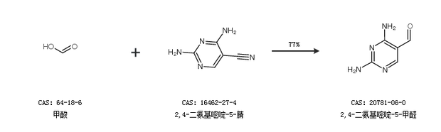 2.通过甲酸和2,4-二氨基嘧啶-5-腈合成2,4-二氨基嘧啶-5-甲醛,收率约77%;