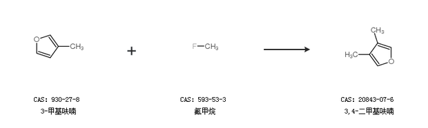 1.通过3-甲基呋喃和氟甲烷合成3,4-二甲基呋喃