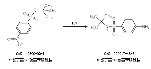 1.通过N-叔丁基-4-硝基苯磺酰胺合成N-叔丁基-4-氨基苯磺酰胺,收率约10%;