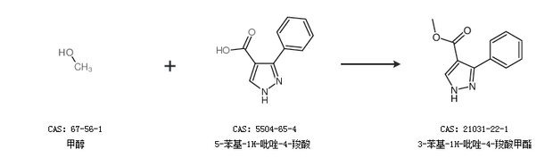 2.通过甲醇和5-苯基-1H-吡唑-4-羧酸合成3-苯基-1H-吡唑-4-羧酸甲酯