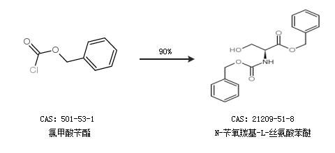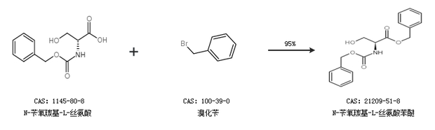 1.通过N-苄氧羰基-L-丝氨酸和溴化苄合成N-苄氧羰基-L-丝氨酸苯醚,收率约95%;