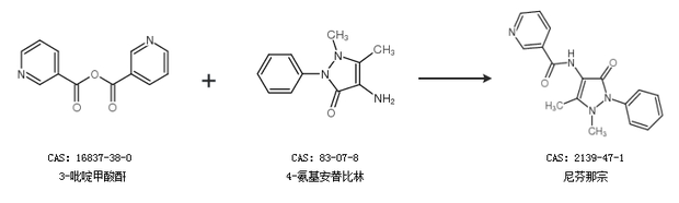 1.通过吡啶-3-羧酸酰氯和4-氨基安替比林合成尼芬那宗
