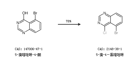 1.通过5-溴喹唑啉-4-酮合成5-溴-4—氯喹唑啉,收率约78%;