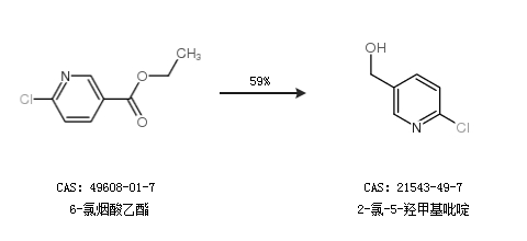2.通过6-氯烟酸乙酯合成2-氯-5-羟甲基吡啶,收率约59%;