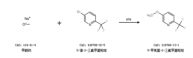 1.通过甲醇钠和5-溴-2-三氟甲基吡啶合成5-甲氧基-2-三氟甲基吡啶,收率约87%;