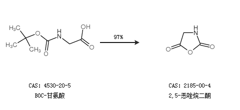 1.通过BOC-甘氨酸合成2,5-恶唑烷二酮,收率约97%;