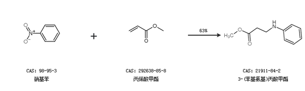 1.通过硝基苯和丙烯酸甲酯合成3-(苯基氨基)丙酸甲酯,收率约63%;