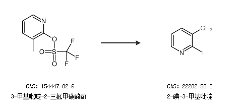 2.通过3-甲基吡啶-2-三氟甲磺酸酯合成2-碘-3-甲基吡啶