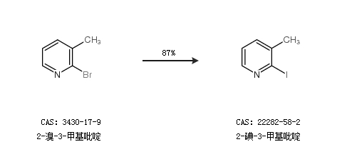 1.通过2-溴-3-甲基吡啶合成2-碘-3-甲基吡啶,收率约87%;