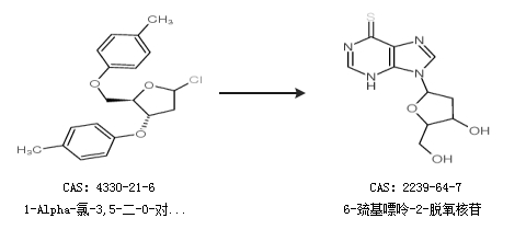 2.通过1-Alpha-氯-3,5-二-O-对甲苯甲酰基-2-脱氧-D-呋喃核糖合成6-巯基嘌呤-2-脱氧核苷