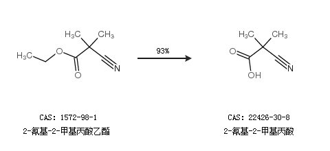 1.通过2-氰基-2-甲基丙酸乙酯合成2-氰基-2-甲基丙酸,收率约93%;