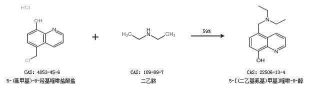 1.通过5-(氯甲基)-8-羟基喹啉盐酸盐和二乙胺合成5-[(二乙基氨基)甲基]喹啉-8-醇,收率约59%;