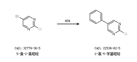 2.通过5-溴-2-氯嘧啶合成2-氯-5-苯基嘧啶,收率约80%;