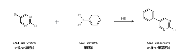 1.通过5-溴-2-氯嘧啶和苯硼酸合成2-氯-5-苯基嘧啶,收率约94%;