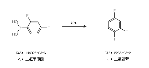 1.通过2,4-二氟苯硼酸合成2,4-二氟碘苯,收率约70%;