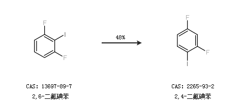 2.通过2,6-二氟碘苯合成2,4-二氟碘苯,收率约48%;