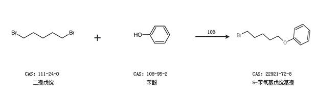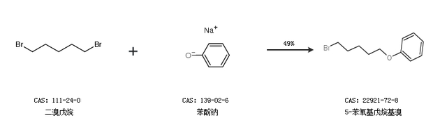 1.通过二溴戊烷和苯酚合成5-苯氧基戊烷基溴,收率约10%;