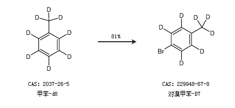 1.通过甲苯-d8合成对溴甲苯-D7,收率约81%;