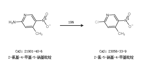 2.通过2-氨基-4-甲基-5-硝基吡啶合成2-氯-5-硝基-4-甲基吡啶,收率约19%;