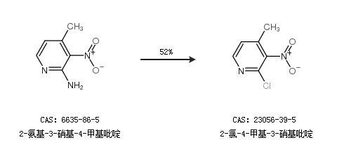 1.通过2-氨基-3-硝基-4-甲基吡啶合成2-氯-4-甲基-3-硝基吡啶,收率约52%;