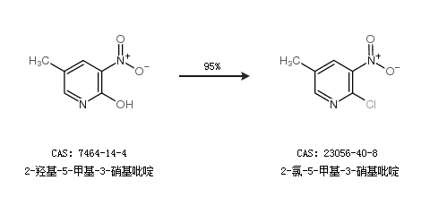 1.通过2-羟基-5-甲基-3-硝基吡啶合成2-氯-5-甲基-3-硝基吡啶,收率约95%;