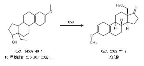 1.通过18-甲基雌甾-2,5(10)-二烯-3&beta合成沃氏物,收率约85%;