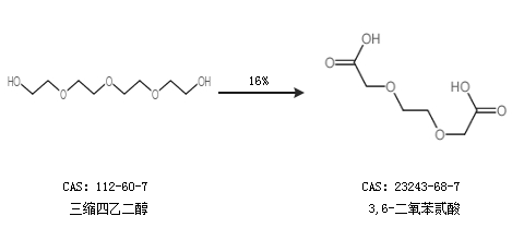 2.通过三缩四乙二醇合成3,6-二氧苯贰酸,收率约16%;