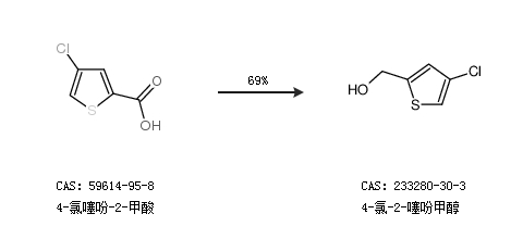 1.通过4-氯噻吩-2-甲酸合成4-氯-2-噻吩甲醇,收率约69%;
