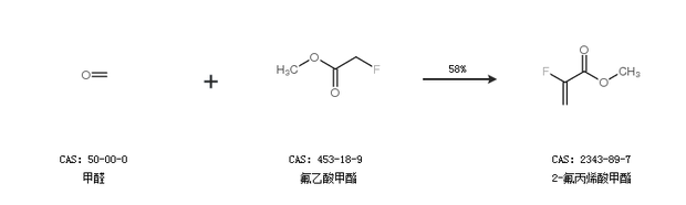 1.通过甲醛和氟乙酸甲酯合成2-氟丙烯酸甲酯,收率约58%;