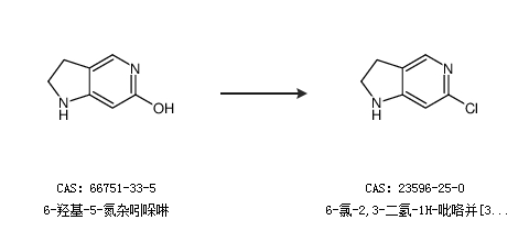 2.通过6-羟基-5-氮杂吲哚啉合成6-氯-2,3-二氢-1H-吡咯并[3,2-c]吡啶