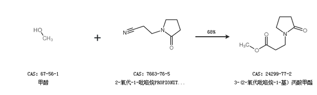 2.通过甲醇和2-氧代-1-吡咯烷PROPIONITRILE合成3-(2-氧代吡咯烷-1-基) 丙酸甲酯,收率约68%;