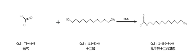 1.通过光气和十二醇合成氯甲酸十二烷基酯,收率约66%;