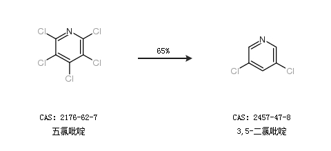 2.通过五氯吡啶合成3,5-二氯吡啶,收率约65%;