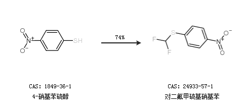 1.通过4-硝基苯硫醇合成对二氟甲硫基硝基苯,收率约74%;