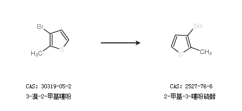 1.通过3-溴-2-甲基噻吩合成2-甲基-3-噻吩硫醇