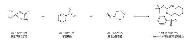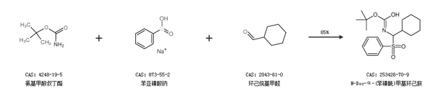 2.通过氨基甲酸叔丁酯、苯亚磺酸和环己烷基甲醛合成N-Boc-α-(苯磺酰)甲基环己胺