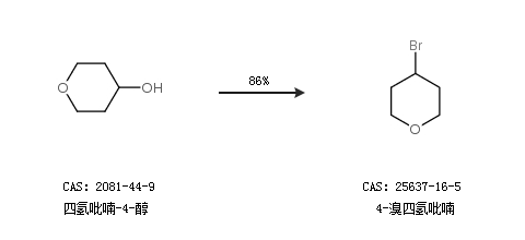 1.通过四氢吡喃-4-醇合成4-溴四氢吡喃,收率约86%;