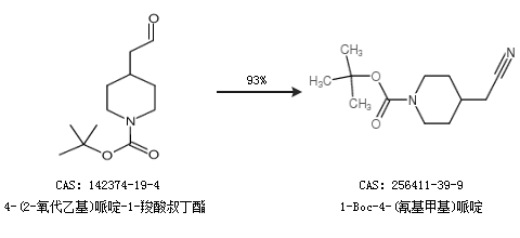2.通过4-(2-氧代乙基)哌啶-1-羧酸叔丁酯合成1-Boc-4-(氰基甲基)哌啶,收率约93%;