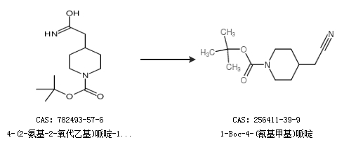 1.通过4-(2-氨基-2-氧代乙基)哌啶-1-羧酸叔丁酯合成1-Boc-4-(氰基甲基)哌啶