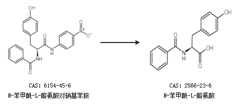 1.通过N-苯甲酰-L-酪氨酸对硝基苯胺合成N-苯甲酰-L-酪氨酸