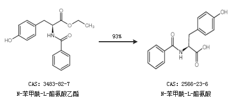 2.通过N-苯甲酰-L-酪氨酸乙酯合成N-苯甲酰-L-酪氨酸,收率约93%;