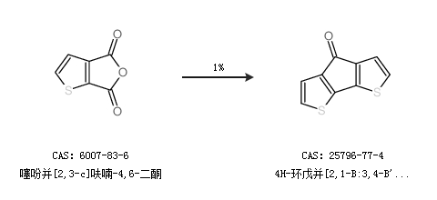 1.通过噻吩并[2,3-c]呋喃-4,6-二酮合成4H-环戊并[2,1-B:3,4-B'']二噻吩-4-酮,收率约1%;