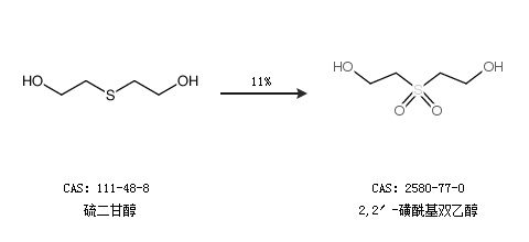 2.通过硫二甘醇合成2,2′-磺酰基双乙醇,收率约11%;