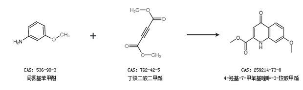1.通过间氨基苯甲醚和丁炔二酸二甲酯合成4-羟基-7-甲氧基喹啉-3-羧酸甲酯