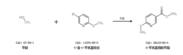 2.通过甲醇和5-溴-2-甲氧基吡啶合成6-甲氧基烟酸甲酯,收率约73%;