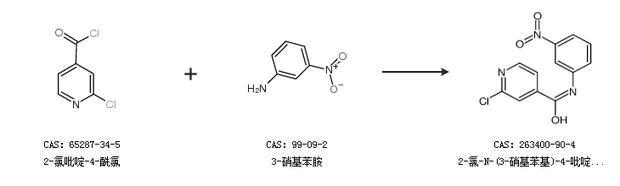 1.通过2-氯吡啶-4-酰氯和3-硝基苯胺合成2-氯-N-(3-硝基苯基)-4-吡啶羧酰胺