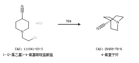 1.通过1-(2-氯乙基)-4-氰基哌啶盐酸盐合成4-氰奎宁环,收率约76%;