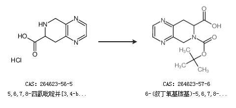 1.通过5,6,7,8-四氢吡啶并[3,4-b]吡嗪-7-羧酸盐酸盐合成6-(叔丁氧基羰基)-5,6,7,8-四氢吡啶并[3,4-b]吡嗪-7-羧酸