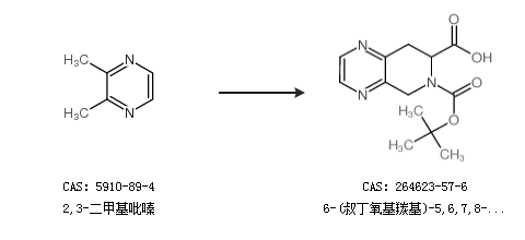 2.通过2,3-二甲基吡嗪合成6-(叔丁氧基羰基)-5,6,7,8-四氢吡啶并[3,4-b]吡嗪-7-羧酸