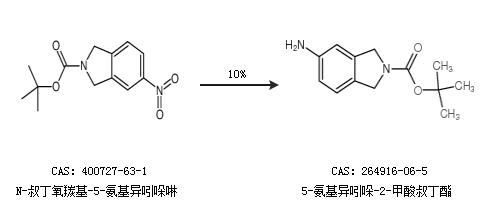 1.通过N-叔丁氧羰基-5-氨基异吲哚啉合成5-氨基异吲哚-2-甲酸叔丁酯,收率约10%;